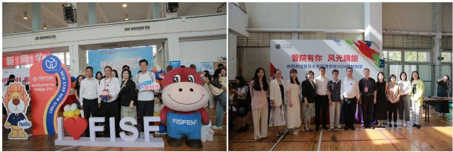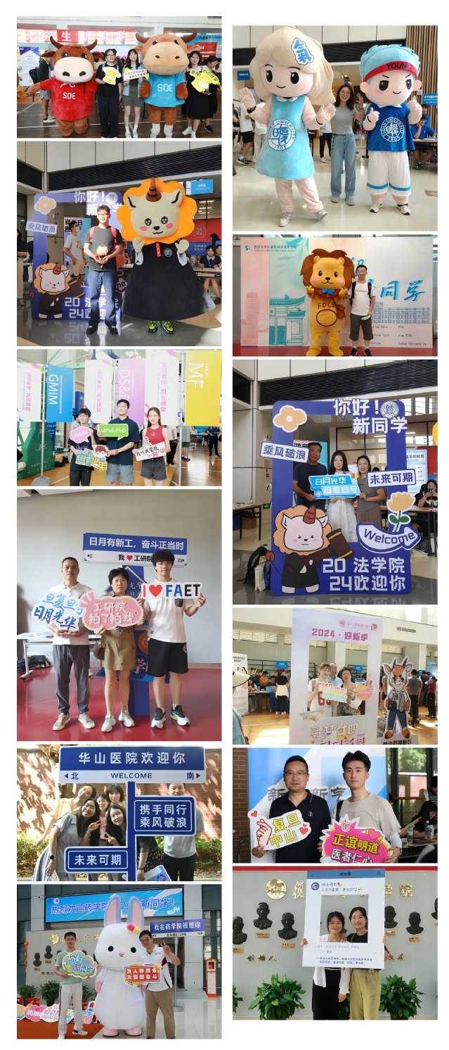 迎新现场欢声笑语,热闹非凡,来自世界各地的研究生新生纷纷驻足于院系精心布置的专属打卡点,用镜头定格这难忘瞬间。