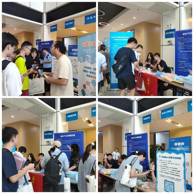 研究生院、研工部、组织部、信息办、团委、保卫处、外国留学生工作处、校友会等部门在现场设立报到咨询点,面向新生和家长提供高效便捷的答疑与指导服务。