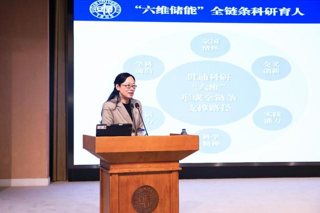 复旦大学研究生工作部部长陈洁作《新时代研究生的特点、变化与思政工作实践》的主旨报告,她用详实的调研数据,分析了研究生学习状态、压力来源、就业环境和导学关系等变化,指出研究生思政工作的着力点在于贯通科研“六维储能”,形成全链条支撑路径,提升学生的就业能力。陈洁部长强调,导师不是一个人在“战斗”,辅导员将与导师一起,导辅协同、合力育人。