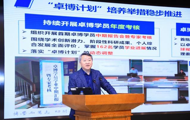 校长助理、研究生院常务副院长陈焱作《我校研究生教育高质量发展的创新实践》的主旨报告,介绍了复旦研究生教育概况、博英行动计划已取得的成效和未来三年改革思路、“AI大课”建设情况,以及本研融通改革目标与举措。