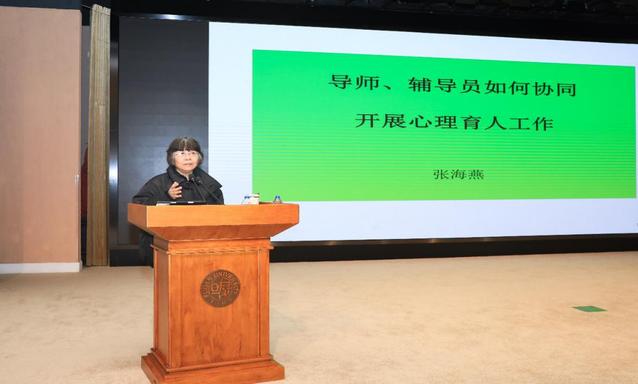 研究生群体是心理健康问题的高发人群之一,上海学校心理健康教育专家指导委员会委员、上海高校心理咨询协会副会长张海燕从专业角度,以“导师、辅导员如何协同开展心理育人工作”为题,介绍了心理正常与异常的差异及如何辨别异常心理,提出“听其言、观其行、观其色”的9字方法,为导师在日常学习生活中关怀学生心理、稳定学生情绪提供了指导。