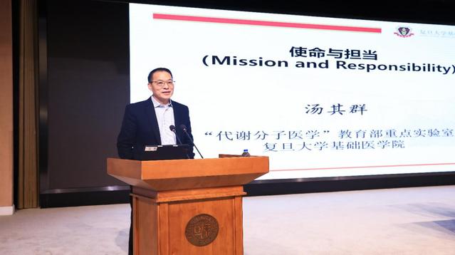 特聘教授、“代谢分子医学”教育部重点实验室主任汤其群从“医学是什么?”谈起,结合“使命与担当”的主题,介绍了自己从兴趣到探索,最终走向专研的成才路径。汤老师指出,作为导师应该让学生了解学科专业,整合基础实验、临床问题、临床研究,最终让医学研究回归改变临床的本质。